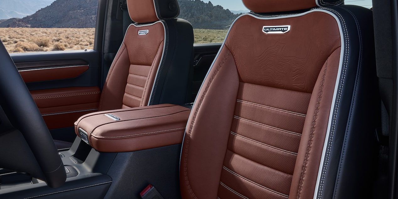 The 2024 GMC Sierra 2500 HD features a spacious and comfortable cabin accommodating up to six passengers. It has a 13.4-inch diagonal touch-screen infotainment system and a 12.3-inch?digital driver information center, providing advanced connectivity and convenience. For added luxury, the truck offers leather-appointed seating, heated and ventilated front seats, and heated rear outboard seats, ensuring comfort in any weather. The wireless charging pad and Bose premium sound system enhance the driving experience, while Apple CarPlay and Android Auto compatibility keep you connected on the go. Additional features such as the available Wi-Fi hotspot capability, rear camera mirror, and power sunroof add to the Sierra 2500 HD's appeal, making it a well-rounded choice for work and leisure.