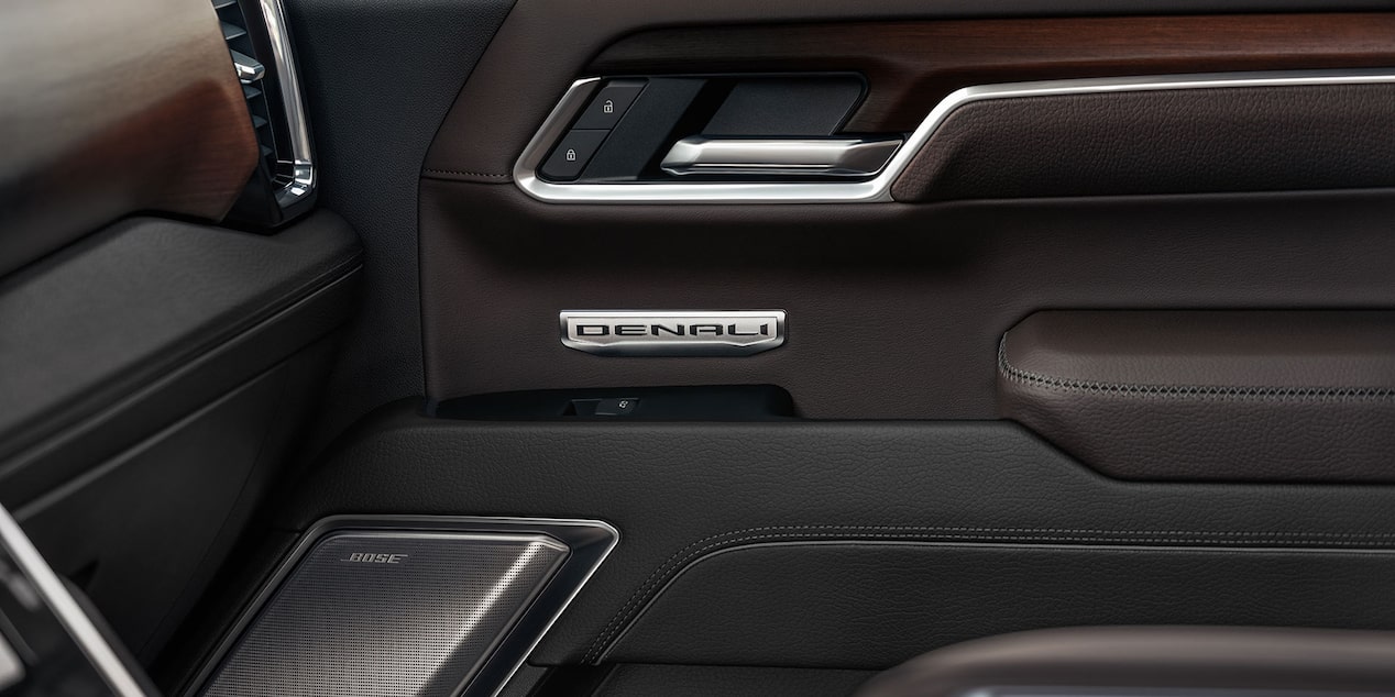A 13.4-inch diagonal infotainment touchscreen comes standard on SLE and higher trims, and the SLT and above boast a 12.3-inch digital instrument cluster. The Denali and Denali Ultimate trims feature premium leather seating with 16-way power adjustments and a 15-inch multicolor head-up display. Premium open-pore wood trim and authentic aluminum accents elevate the Denali Ultimate's luxurious feel. The Sierra accommodates five to eight passengers depending on cab configuration. A premium Bose audio system with Centerpoint surround sound enhances the audio experience.